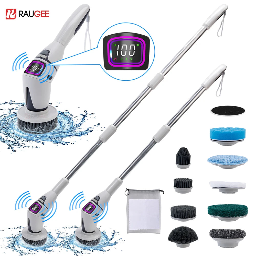 5.【LED Display/Voice Broadcast/LED Night Light 】 The bathroom scrubber with long handle is improved with LED display and Voice Broadcast. You can easily know the power status and speed levels through LED screen, no need to worry about running out of power. The cordless electric spin cleaner is specially designed with a LED night light function, even the dark corners can be cleaned.