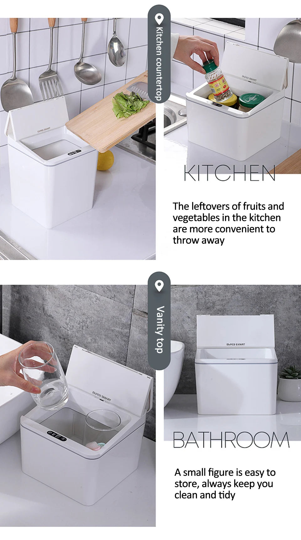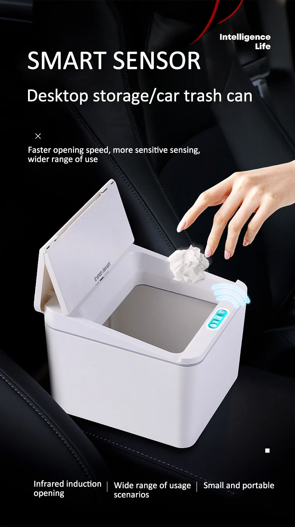 Intelligent Mini Desktop Trash Can Automatic Touchless Infrared Motion Sensor Trash Can Car Trash Portable Storage For Kitchen