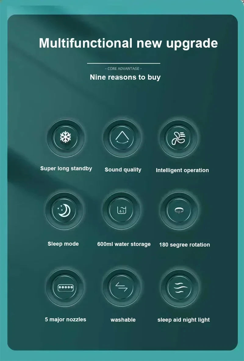 *3 Wind and 3 Spray: The air cooler fan has 3 wind speed modes (low/medium/high) and 3 spray modes; you can adjust the wind speed and spray mode according to the occasion. It is a combination of personal air conditioning cooler, fan, and air humidifier, with a three-in-one multi-functional design, allowing you to stay away from the hot summer and enjoy a cool summer. 7 colorful lights create a romantic atmosphere on the dining table or coffee table on hot summer nights! Put it in the bedroom and accompany you into the beautiful night. This air cooler works powerfully and makes low noise, allowing you to sleep comfortably throughout the night in a quiet environment.