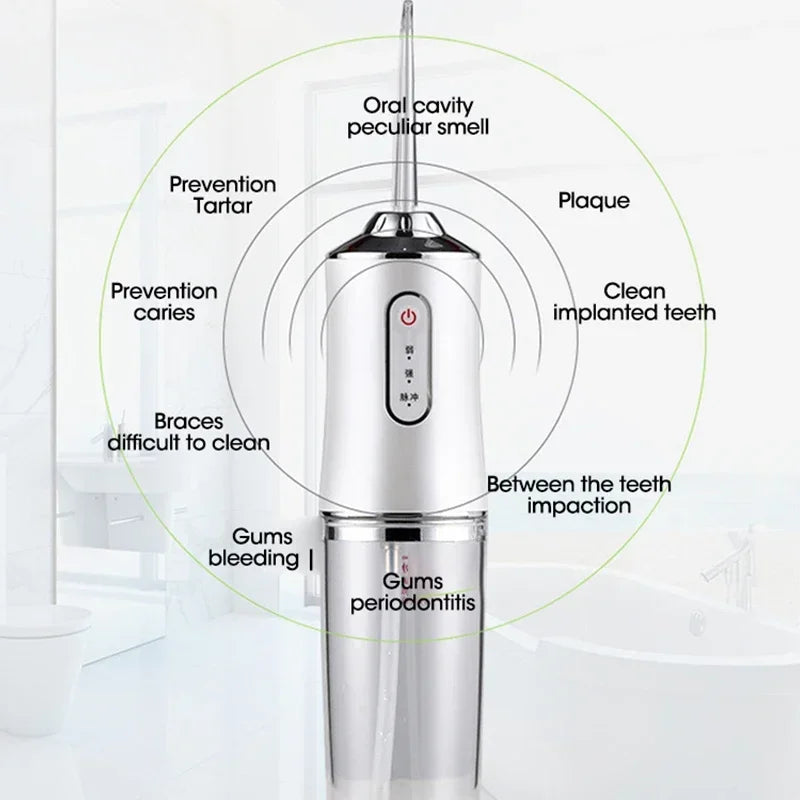 Oral Irrigator Portable Dental Water Flosser USB Rechargeable Water Jet Floss Tooth Pick 4 Jet Tip 220ml 3 Modes Teeth Cleaner