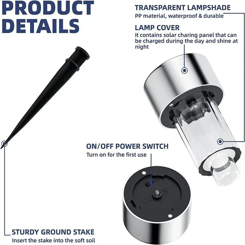 Easy Installation: No complicated instructions or tools required! Our solar path lights are designed for effortless installation. No need for intricate instructions or tools. Simply flip the switch and securely insert the stake into the soil. Enjoy stable and reliable lighting wherever you desire. These lights provide the perfect combination of simplicity and functionality.