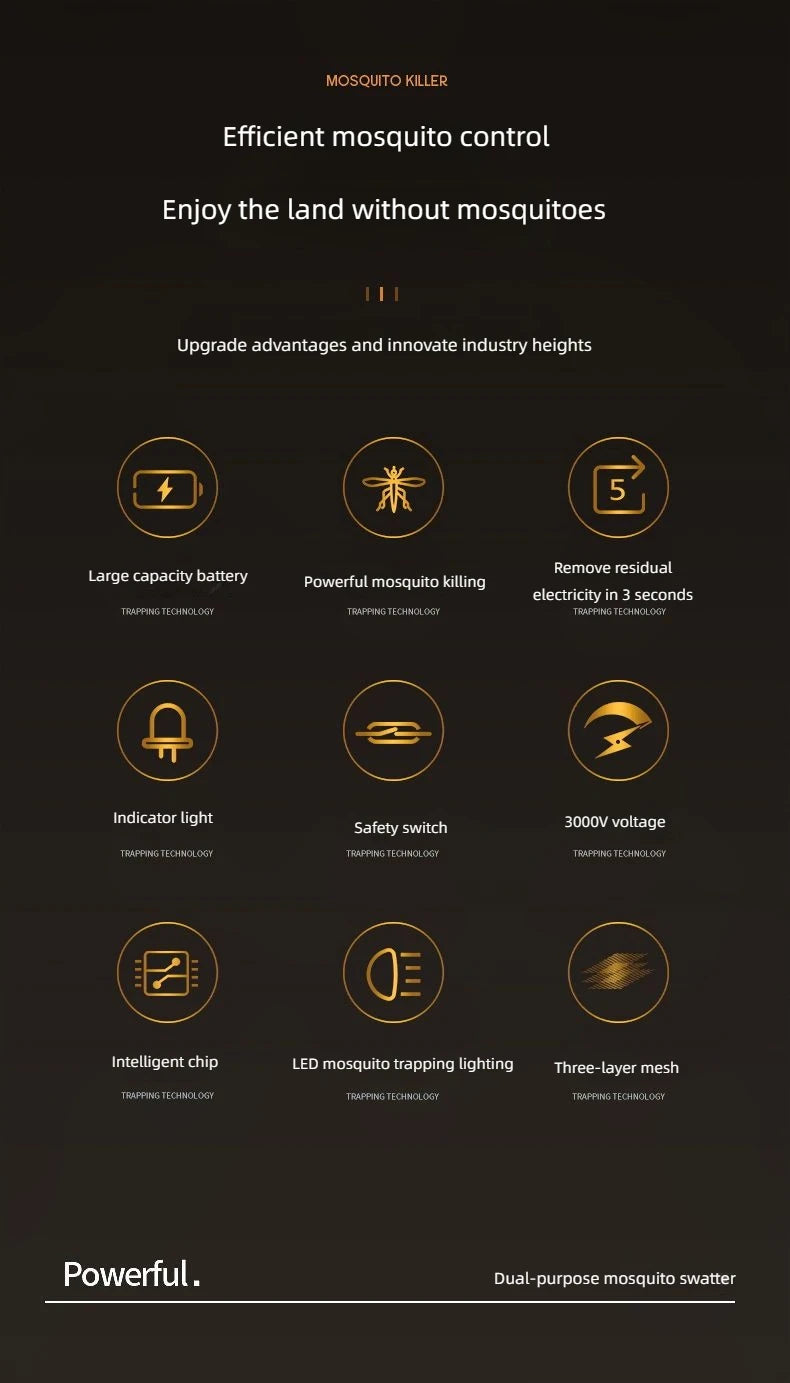 Automatic mosquito attraction / TYPE-C charging / Security protection grid / Extra Long Range