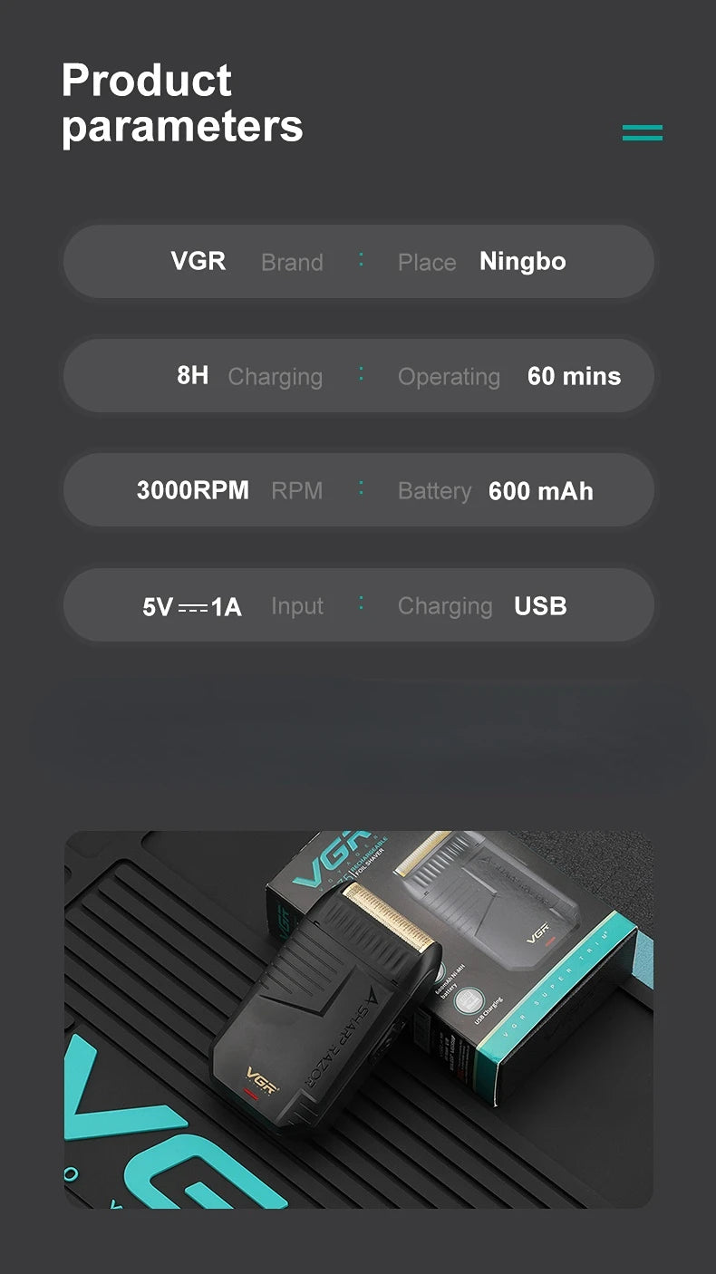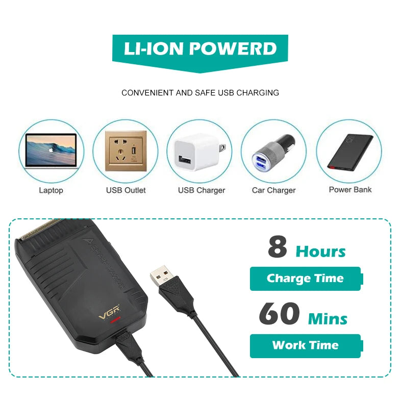 VGR Razor Rechargeable Razor Professional Beard Trimmer Electric Trimmer Reciprocating Shaver Finishing Shaver for Man V-375